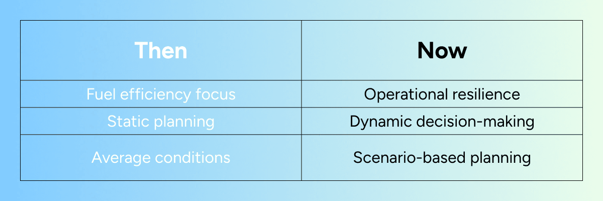 Weather patterns are shifting. Trade routes are being reshaped by geopolitical developments. Port congestion and disruption are becoming less predictable. These factors are increasingly working against the gains made in efficiency.