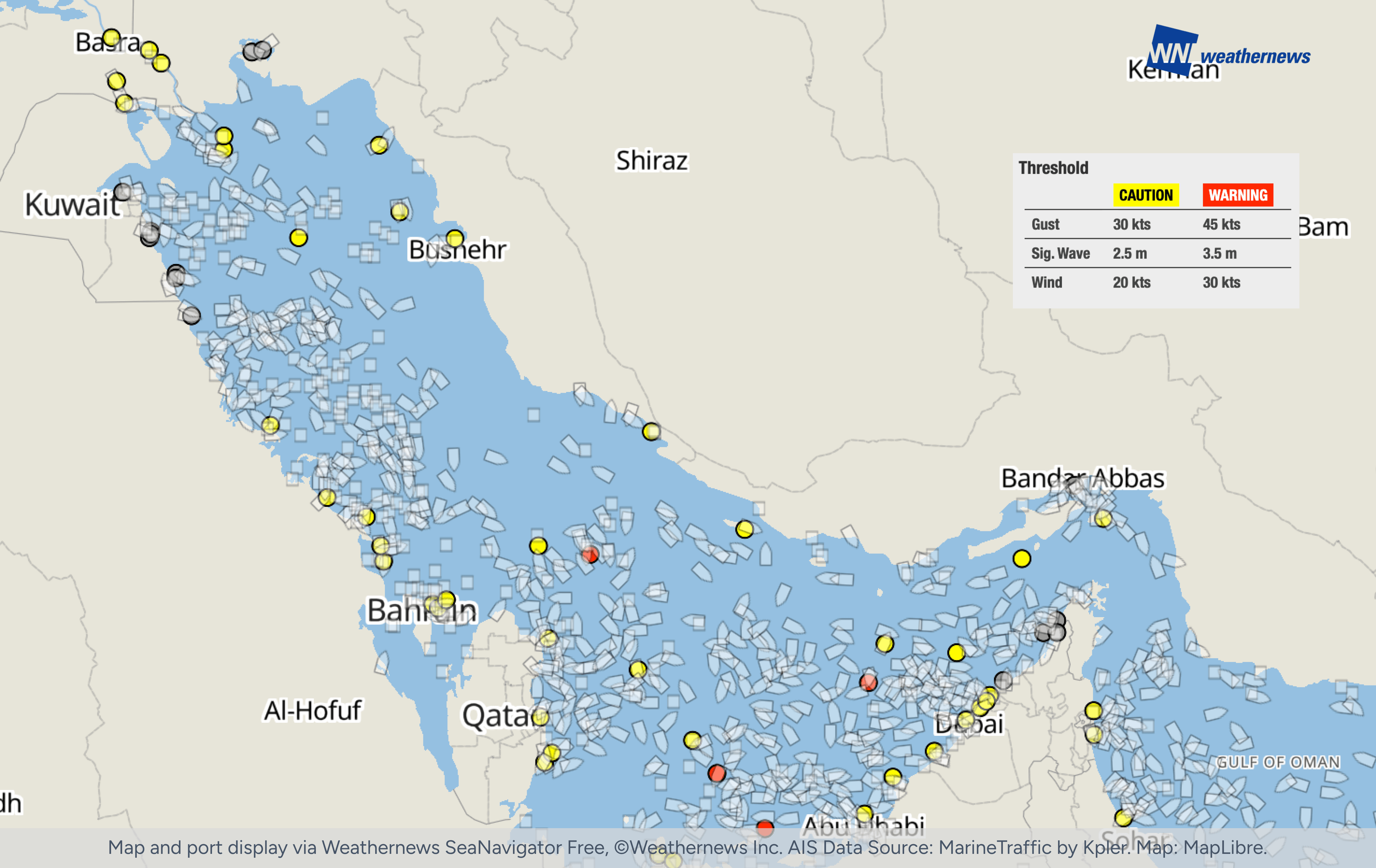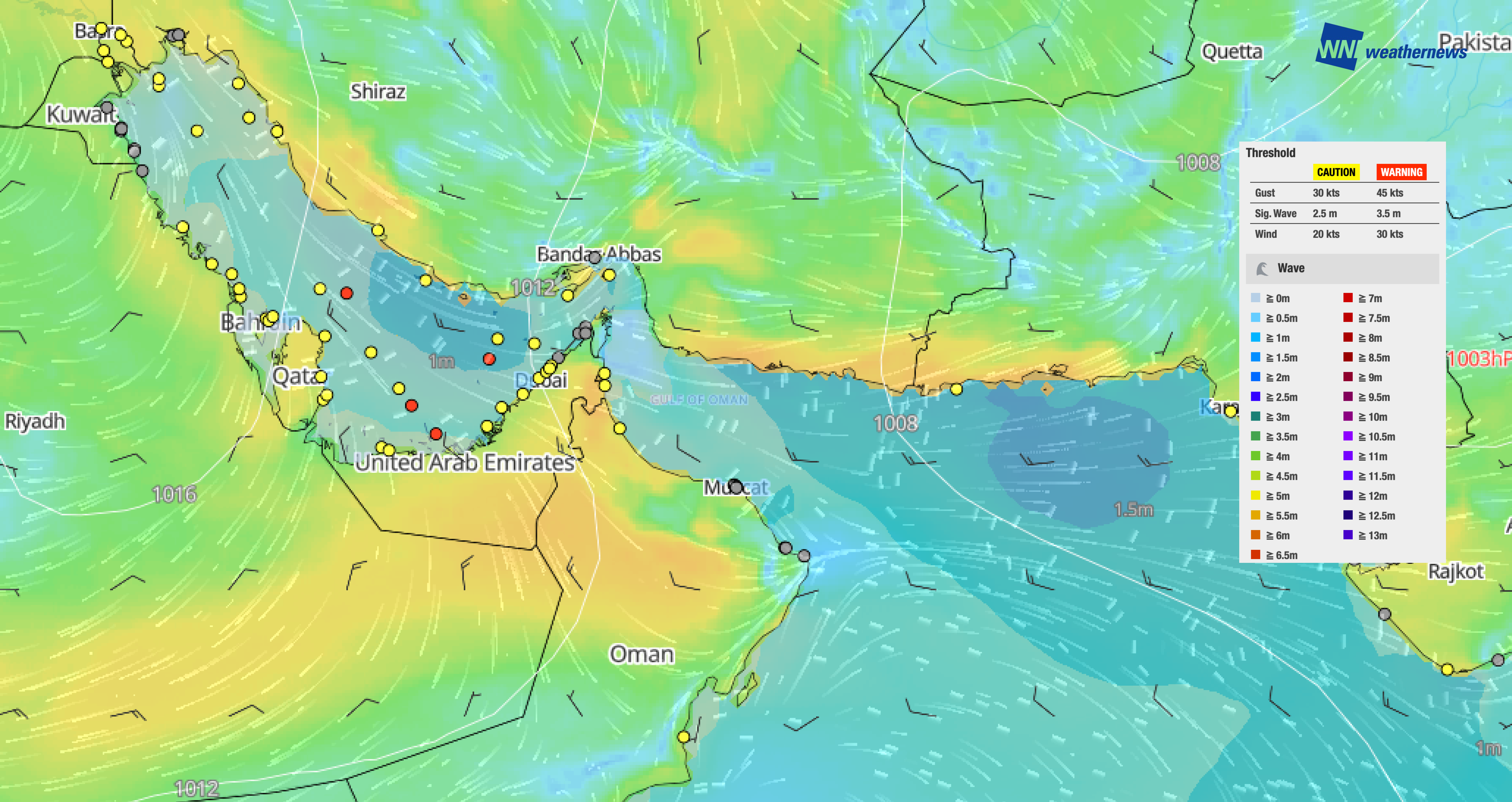 Select port forecasts in the Middle East via Weathernews SeaNavigator Free.