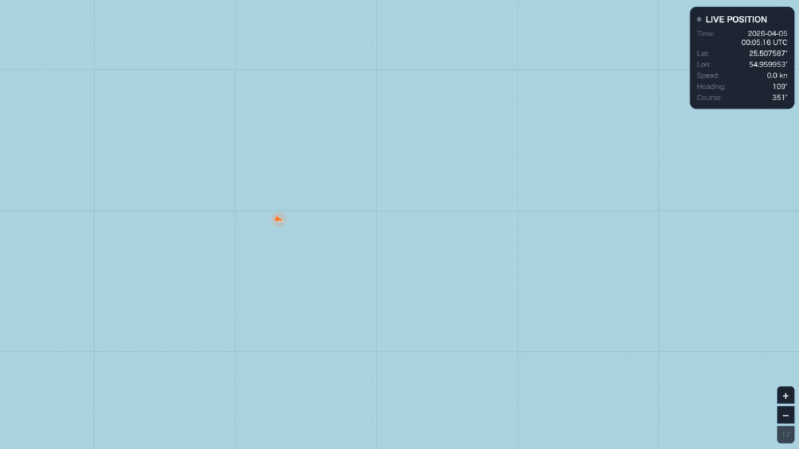 This animation records the movements of a crude oil tanker approximately 240 meters in length, anchored approximately 22 nautical miles northwest of Dubai Port, from the early hours of April 5th through the early hours of April 7th (local time). This vessel is representative of the anchoring behavior observed across the vessels highlighted in our previous analysis.