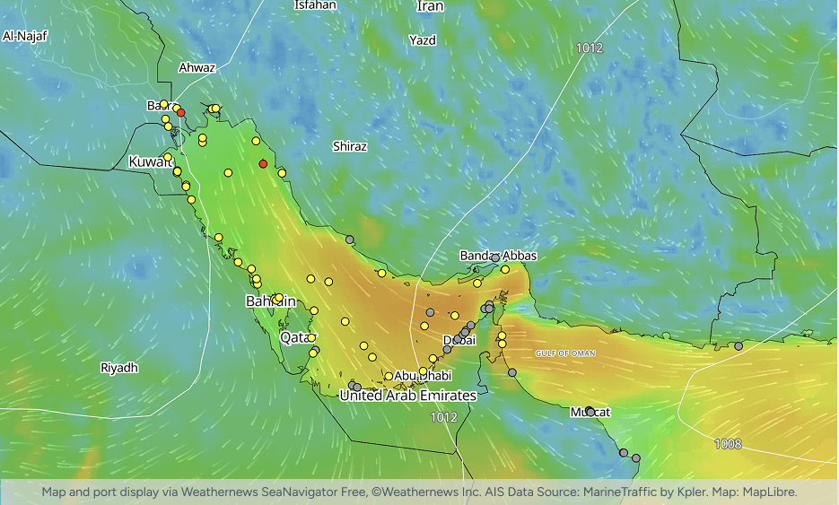 For a limited time, we are publicly disclosing port forecasts for the Middle East via our platform SeaNavigator Free. We monitor 150 locations across the region and its surrounding waters, updating four times daily with 48-hour, 5-day, and 7-day outlooks.